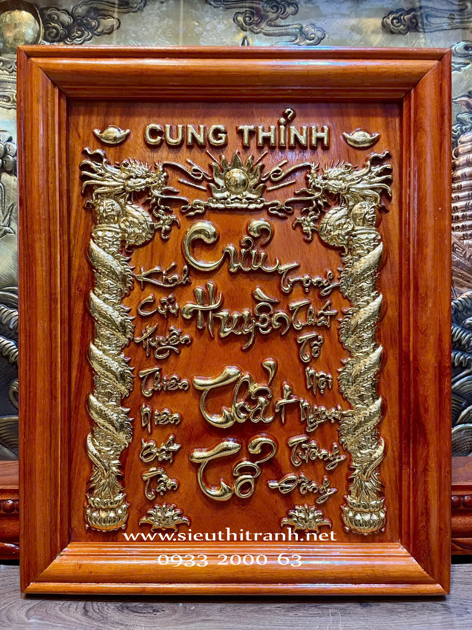 Chất liệu gỗ Hương đỏ ngoại nhập. chữ được dát vàng đài loan có độ bền đẹp cao.