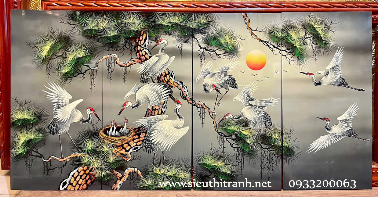 Chất liệu sơn mài vẽ tay, bộ ghép 4 tấm, kích cỡ 1 tấm 30*60cm