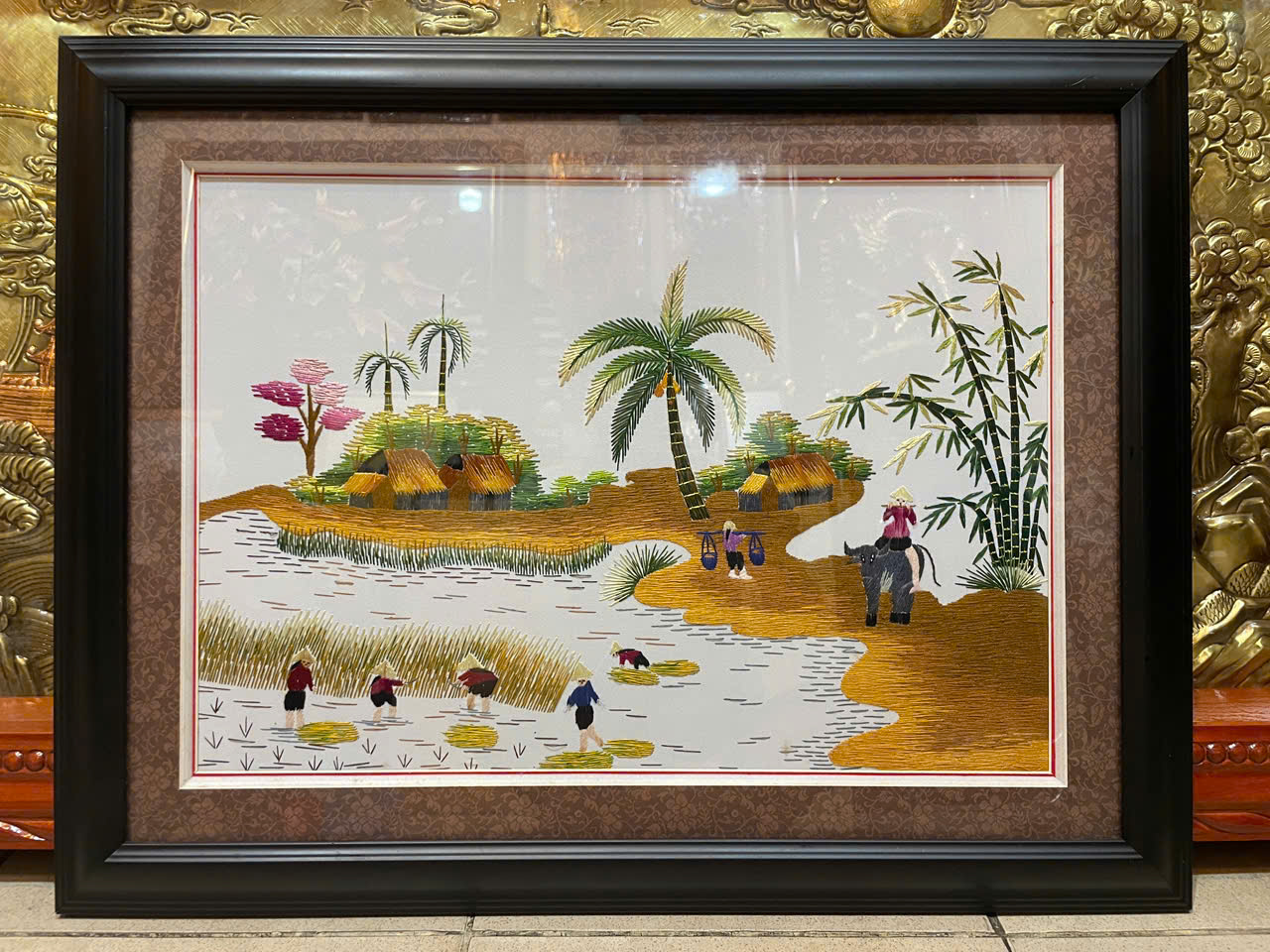 Giới thiệu Tổ nghề thêu việt nam Thêu là một nghề thủ công truyền thống đã gắn bó bao đời của người phụ nữ Việt Nam. Tương truyền thế kỷ XVII, cụ Lê Công Hành (sinh ngày 18/01/1606 – mất ngày 12/06/1661) tại làng Quất Động. Thêu là một nghề thủ công truyền thống đã gắn bó bao đời của người phụ nữ Việt Nam. Tương truyền thế kỷ XVII, cụ Lê Công Hành (sinh ngày 18/01/1606 – mất ngày 12/06/1661) tại làng Quất Động, xã Quất Động, huyện Thường Tín, tỉnh Hà Tây đã học được kỹ thuật thêu nổi của người Trung Hoa, thông qua đó kết hợp với phong cách thêu truyền thống của dân tộc để tạo nên một phong cách thêu mới độc đáo, mang đậm nét mỹ thuật. Đến nay, những người thợ thêu trong cả nước đều xem cụ là ông tổ của nghề thêu. Thêu thùa, kim chỉ luôn là người bạn tâm giao của người phụ nữ Việt Nam tự ngàn xưa và là một trong những chuẩn mực để đánh giá công, dung, ngôn, hạnh của người phụ nữ, bởi vậy mà Người xưa có câu: “Trai thì đọc sách ngâm thơ Gái thì kim chỉ thêu thùa vá may” Tranh thêu chính là không gian vỗ về, không gian bình yên, không gian tâm tưởng của người phụ nữ. Với bàn tay tài hoa và niềm đam mê nghề nghiệp, người nghệ nhân thêu tranh đã thả hồn theo những đường kim mũi chỉ, làm nên bức tranh sống động, gợi nhiều cảm xúc trong tâm hồn người xem. Xuất phát từ nghề thêu truyền thống, với nỗ lực sáng tạo không ngừng của các nghệ nhân, tranh thêu của chúng tôi đã trở thành tiêu điểm của một loại hình nghệ thuật độc đáo, mang đậm bản sắc dân tộc Việt Nam. Ai đã từng nhìn ngắm những bức tranh thêu của chúng tôi chắc hẳn không khỏi thán phục sự tài hoa của những nghệ nhân thêu tranh. Đến với thế giới nghệ thuật tranh thêu là đến với thế giới của màu sắc, đường nét và vẻ đẹp của tâm hồn. Những họa sĩ vẽ mẫu đã hòa mình vào thiên nhiên, tìm sự tĩnh tại của tâm hồn, cảm nhận cuộc sống một cách tinh tế từ đó tạo ra những mẫu tranh thêu độc đáo bằng màu chì đen trên nền giấy can. Bằng kinh nghiệm và sự nhạy cảm, bằng sự đồng điệu giữa họa sĩ và nghệ nhân, mỗi tác phẩm của chúng tôi là một sự kết hợp hài hòa giữa chất liệu và màu sắc. Với sự hòa điệu đó, tranh thêu Bình Minh đã tạo nên giá trị thẩm mỹ vượt trội.