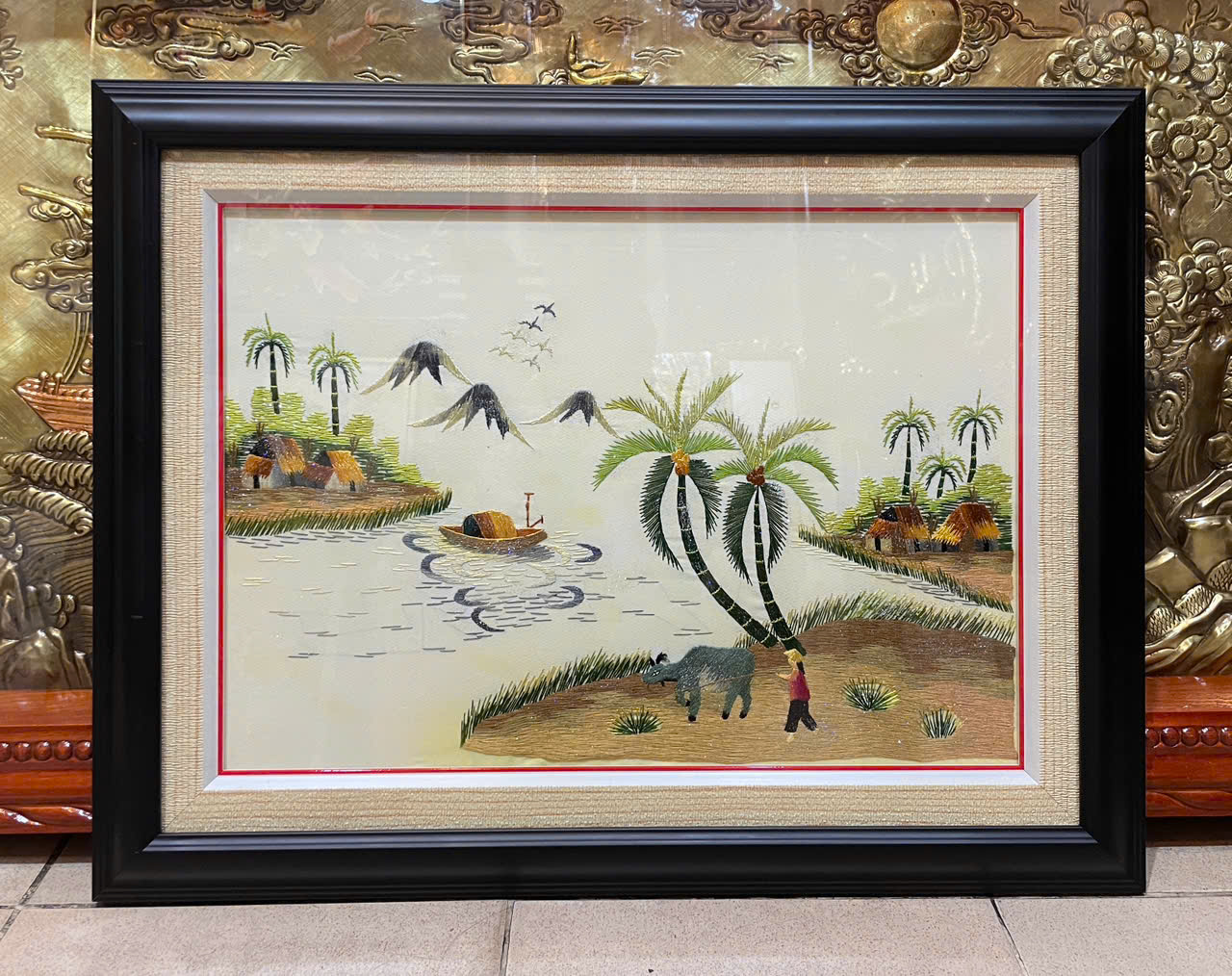 Giới thiệu Tổ nghề thêu việt nam Thêu là một nghề thủ công truyền thống đã gắn bó bao đời của người phụ nữ Việt Nam. Tương truyền thế kỷ XVII, cụ Lê Công Hành (sinh ngày 18/01/1606 – mất ngày 12/06/1661) tại làng Quất Động. Thêu là một nghề thủ công truyền thống đã gắn bó bao đời của người phụ nữ Việt Nam. Tương truyền thế kỷ XVII, cụ Lê Công Hành (sinh ngày 18/01/1606 – mất ngày 12/06/1661) tại làng Quất Động, xã Quất Động, huyện Thường Tín, tỉnh Hà Tây đã học được kỹ thuật thêu nổi của người Trung Hoa, thông qua đó kết hợp với phong cách thêu truyền thống của dân tộc để tạo nên một phong cách thêu mới độc đáo, mang đậm nét mỹ thuật. Đến nay, những người thợ thêu trong cả nước đều xem cụ là ông tổ của nghề thêu. Thêu thùa, kim chỉ luôn là người bạn tâm giao của người phụ nữ Việt Nam tự ngàn xưa và là một trong những chuẩn mực để đánh giá công, dung, ngôn, hạnh của người phụ nữ, bởi vậy mà Người xưa có câu: “Trai thì đọc sách ngâm thơ Gái thì kim chỉ thêu thùa vá may” Tranh thêu chính là không gian vỗ về, không gian bình yên, không gian tâm tưởng của người phụ nữ. Với bàn tay tài hoa và niềm đam mê nghề nghiệp, người nghệ nhân thêu tranh đã thả hồn theo những đường kim mũi chỉ, làm nên bức tranh sống động, gợi nhiều cảm xúc trong tâm hồn người xem. Xuất phát từ nghề thêu truyền thống, với nỗ lực sáng tạo không ngừng của các nghệ nhân, tranh thêu của chúng tôi đã trở thành tiêu điểm của một loại hình nghệ thuật độc đáo, mang đậm bản sắc dân tộc Việt Nam. Ai đã từng nhìn ngắm những bức tranh thêu của chúng tôi chắc hẳn không khỏi thán phục sự tài hoa của những nghệ nhân thêu tranh. Đến với thế giới nghệ thuật tranh thêu là đến với thế giới của màu sắc, đường nét và vẻ đẹp của tâm hồn. Những họa sĩ vẽ mẫu đã hòa mình vào thiên nhiên, tìm sự tĩnh tại của tâm hồn, cảm nhận cuộc sống một cách tinh tế từ đó tạo ra những mẫu tranh thêu độc đáo bằng màu chì đen trên nền giấy can. Bằng kinh nghiệm và sự nhạy cảm, bằng sự đồng điệu giữa họa sĩ và nghệ nhân, mỗi tác phẩm của chúng tôi là một sự kết hợp hài hòa giữa chất liệu và màu sắc. Với sự hòa điệu đó, tranh thêu Bình Minh đã tạo nên giá trị thẩm mỹ vượt trội.