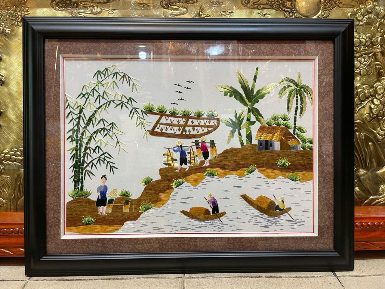 Giới thiệu Tổ nghề thêu việt nam Thêu là một nghề thủ công truyền thống đã gắn bó bao đời của người phụ nữ Việt Nam. Tương truyền thế kỷ XVII, cụ Lê Công Hành (sinh ngày 18/01/1606 – mất ngày 12/06/1661) tại làng Quất Động. Thêu là một nghề thủ công truyền thống đã gắn bó bao đời của người phụ nữ Việt Nam. Tương truyền thế kỷ XVII, cụ Lê Công Hành (sinh ngày 18/01/1606 – mất ngày 12/06/1661) tại làng Quất Động, xã Quất Động, huyện Thường Tín, tỉnh Hà Tây đã học được kỹ thuật thêu nổi của người Trung Hoa, thông qua đó kết hợp với phong cách thêu truyền thống của dân tộc để tạo nên một phong cách thêu mới độc đáo, mang đậm nét mỹ thuật. Đến nay, những người thợ thêu trong cả nước đều xem cụ là ông tổ của nghề thêu. Thêu thùa, kim chỉ luôn là người bạn tâm giao của người phụ nữ Việt Nam tự ngàn xưa và là một trong những chuẩn mực để đánh giá công, dung, ngôn, hạnh của người phụ nữ, bởi vậy mà Người xưa có câu: “Trai thì đọc sách ngâm thơ Gái thì kim chỉ thêu thùa vá may” Tranh thêu chính là không gian vỗ về, không gian bình yên, không gian tâm tưởng của người phụ nữ. Với bàn tay tài hoa và niềm đam mê nghề nghiệp, người nghệ nhân thêu tranh đã thả hồn theo những đường kim mũi chỉ, làm nên bức tranh sống động, gợi nhiều cảm xúc trong tâm hồn người xem. Xuất phát từ nghề thêu truyền thống, với nỗ lực sáng tạo không ngừng của các nghệ nhân, tranh thêu của chúng tôi đã trở thành tiêu điểm của một loại hình nghệ thuật độc đáo, mang đậm bản sắc dân tộc Việt Nam. Ai đã từng nhìn ngắm những bức tranh thêu của chúng tôi chắc hẳn không khỏi thán phục sự tài hoa của những nghệ nhân thêu tranh. Đến với thế giới nghệ thuật tranh thêu là đến với thế giới của màu sắc, đường nét và vẻ đẹp của tâm hồn. Những họa sĩ vẽ mẫu đã hòa mình vào thiên nhiên, tìm sự tĩnh tại của tâm hồn, cảm nhận cuộc sống một cách tinh tế từ đó tạo ra những mẫu tranh thêu độc đáo bằng màu chì đen trên nền giấy can. Bằng kinh nghiệm và sự nhạy cảm, bằng sự đồng điệu giữa họa sĩ và nghệ nhân, mỗi tác phẩm của chúng tôi là một sự kết hợp hài hòa giữa chất liệu và màu sắc. Với sự hòa điệu đó, tranh thêu Bình Minh đã tạo nên giá trị thẩm mỹ vượt trội.