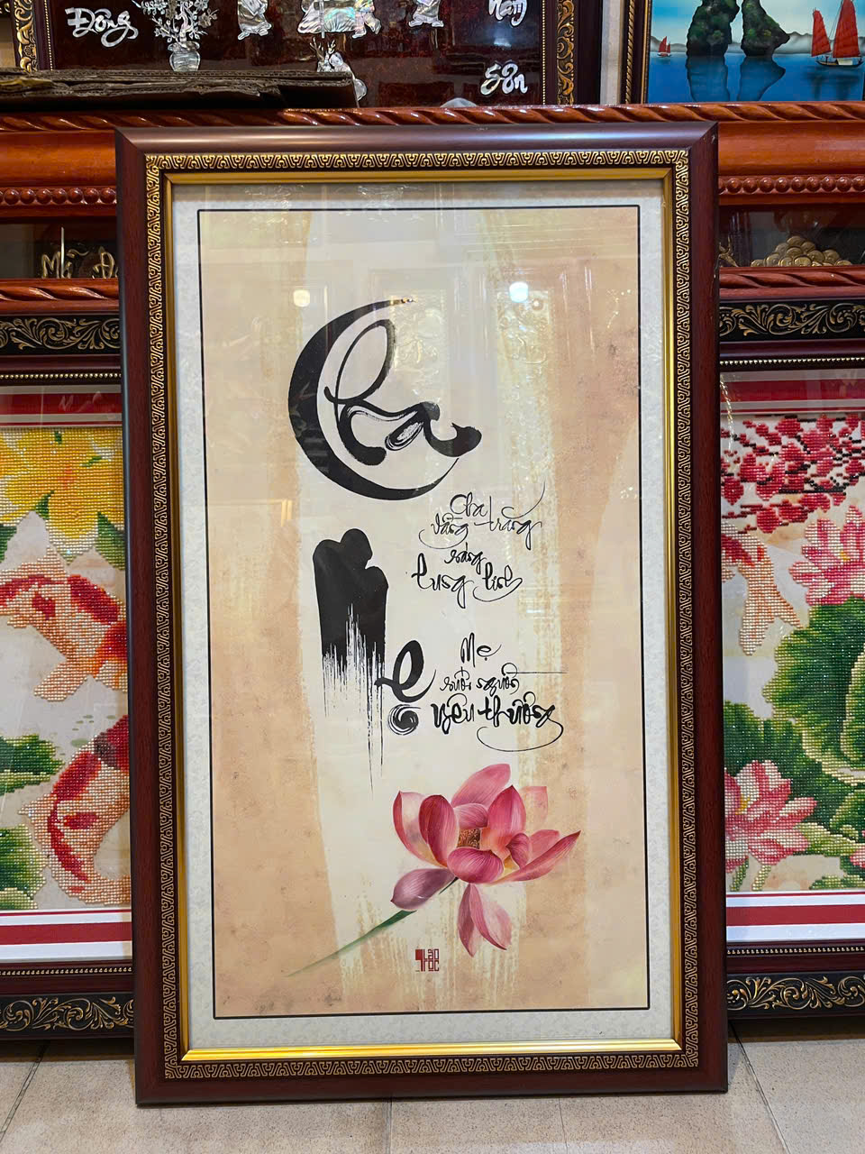 Chất liệu tranh in thư pháp chật liệu mực cao cấp, không ố màu, không ngấm nước, độ bền 50 năm vẫn đẹp