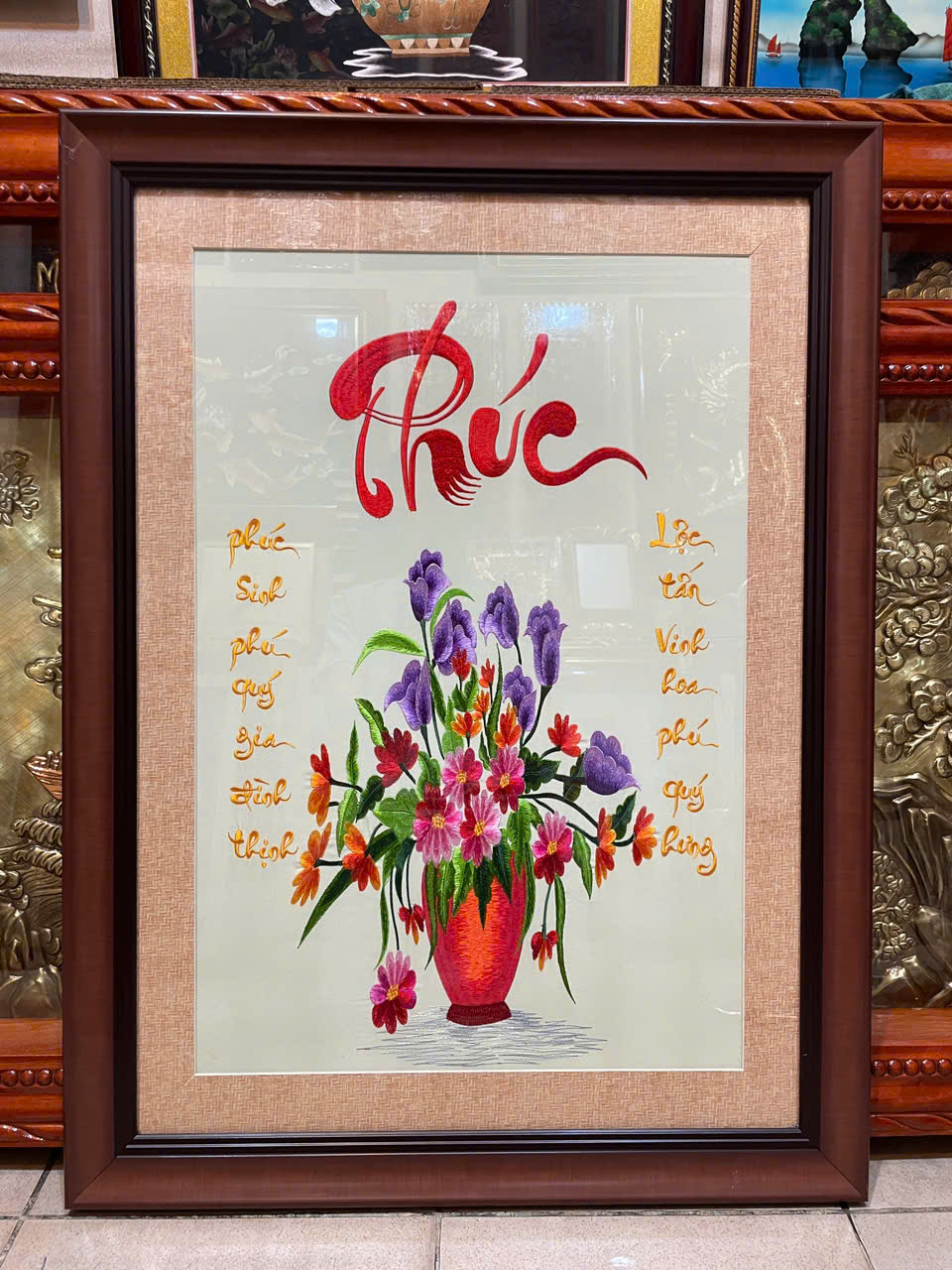 Tranh thư pháp thêu chữ Phúc -F38